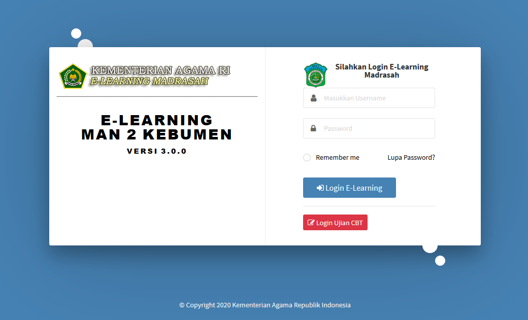 3. Masukkan NISN dan password yang sudah dibagikan, selanjutnya klik Login E-Learning